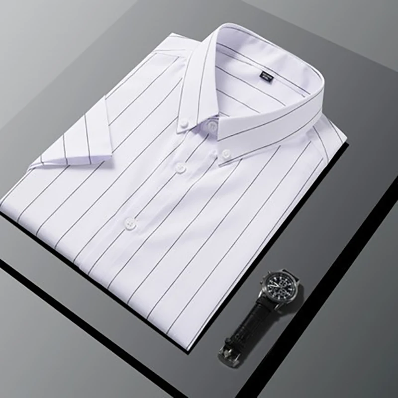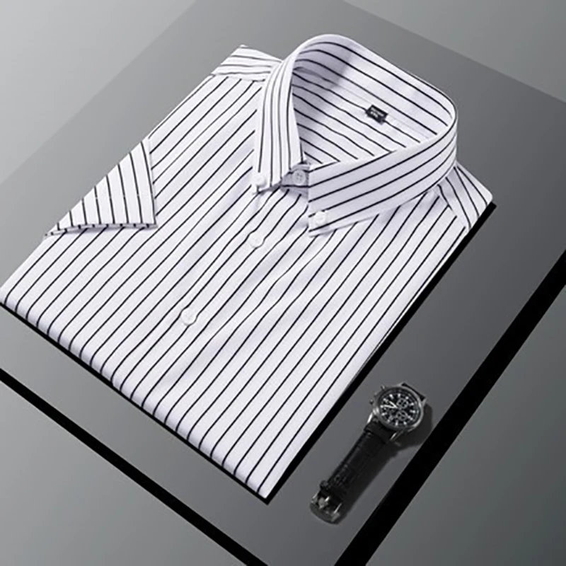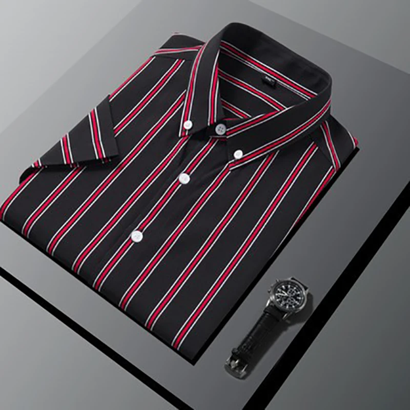 Recommend Men's Black Stripe Shirts Breathable Casual Half Sleeve Summer Men Clothes